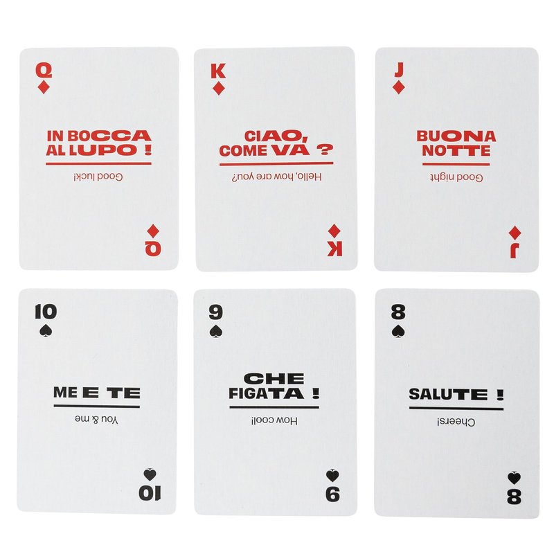- STANDARD PLAY DECK - Each deck of cards has 54 of the most useful phrases to know in Italy, complete with phonetic pronunciations, and features a conventional deck of 52 playing cards and two jokers. These flash cards provide an introduction to common Italian lingo and are ideal for language learners just starting out.