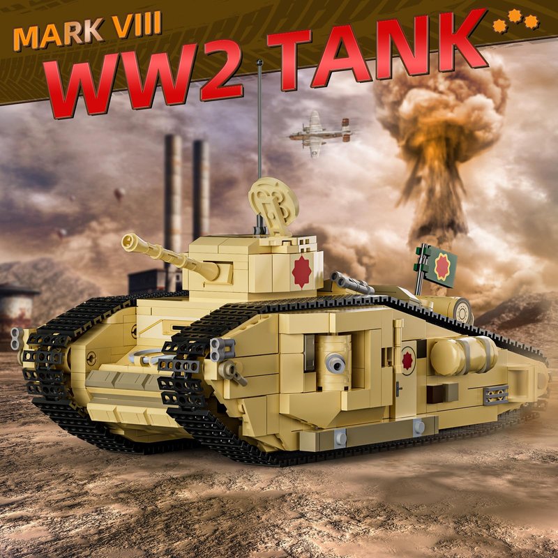 itshWOee Update Movable Tank Building Set for Boys 8-14, WW2 Military Building Toys, Collectible Mark VIII Army Model to Build and Display, Birthday Gifts Ideal for Adults, Fans