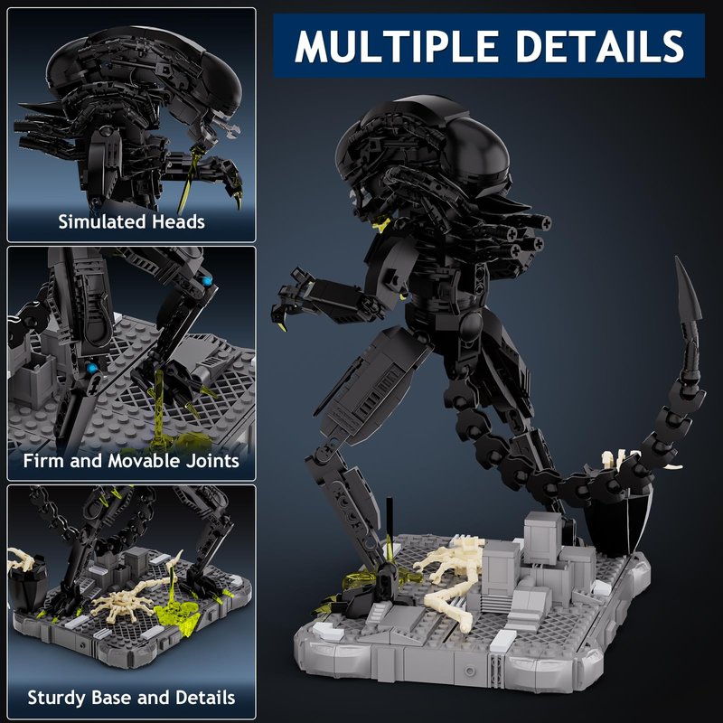 - DETAILED FEATURES: This Toy Building Sets product is themed with Xenomorph, Product size 9.5x9.2x11.7 inches with a detailed reproduction of the character's features. It adopts a unique and cool shape design, equipped with movable joints, Xenomorph Eggs, a xenomorph facehugger, a tail blade, and other elements, allowing the builder to experience visual impact. It is also made of high-quality environmental protection ABS material, which is safe and reliable.