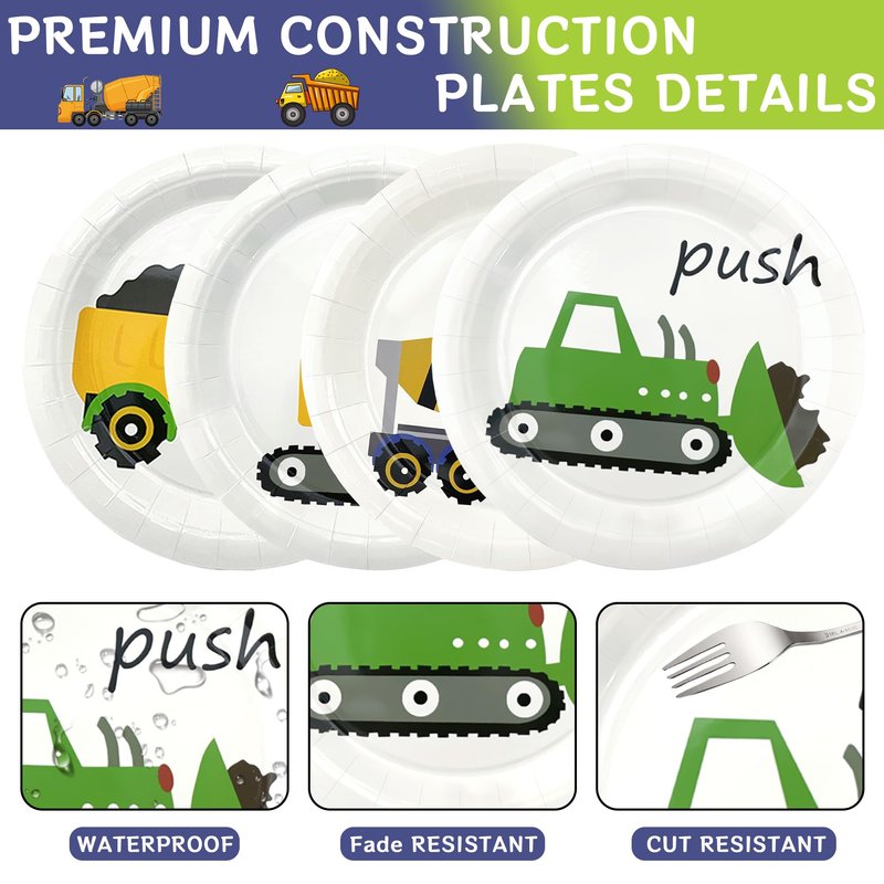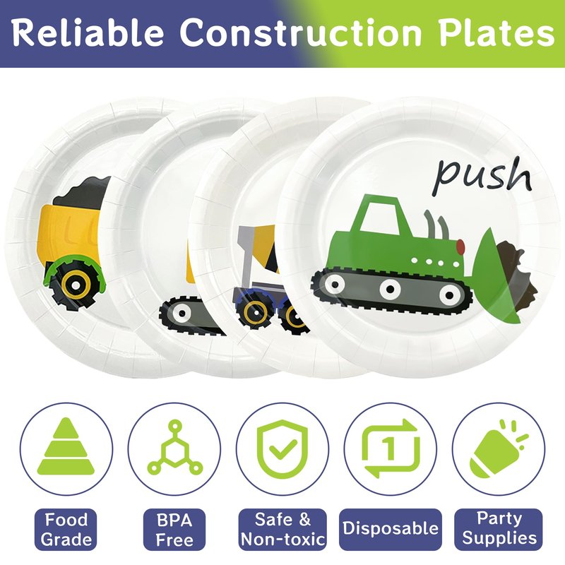 - Premium Material: We prioritize safety and quality in our construction birthday plates. Our construction birthday party supplies are made from food-grade paper material which are safe, non-toxic, BPA free, water-proof, oil-proof and durable. You can rest assured that they are safe for both children and adults.