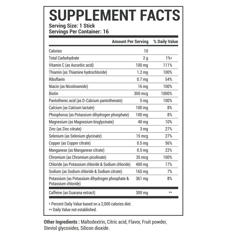 - Powerful ingredients - Packed with the right ingredients to help you perform at your best. Contains electrolytes, B vitamins, caffeine from guarana extract and more.