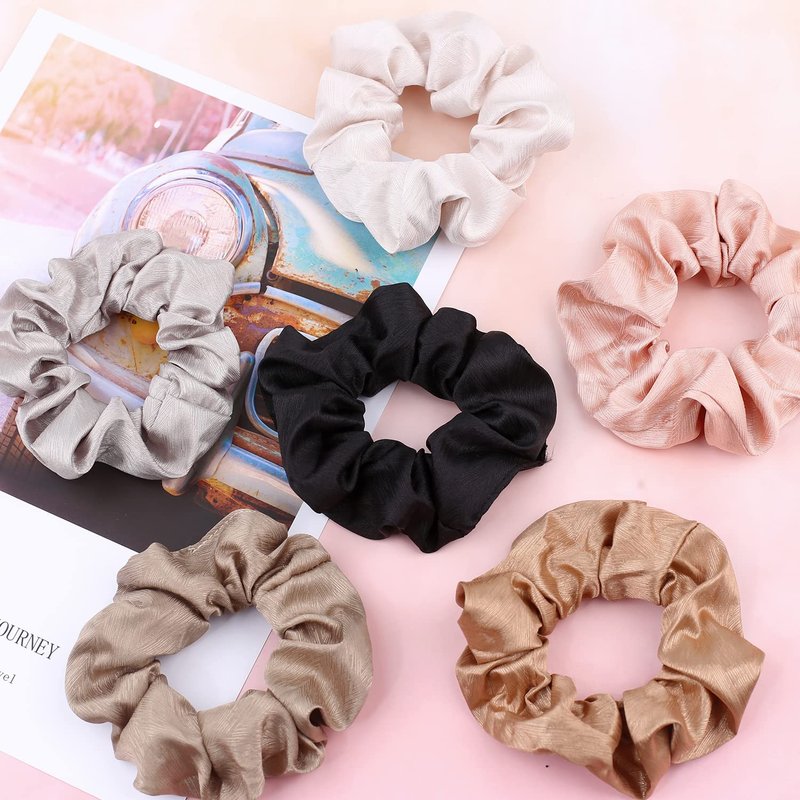 IVARYSS Neutral Scrunchies for Women, Premium Satin Softer than Silk, Solid Elastic Bands Ponytail Holder Hair Accessories, 12 Pack