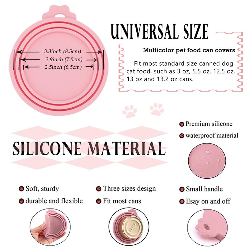- UNIVERSAL SIZE-- Multicolor pet food can covers have three different size rings for fit most standard size canned dog cat food, such as 3 oz, 5.5 oz, 12.5 oz, 13 oz and 13.2 oz cans.