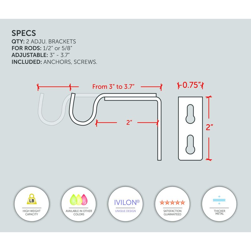 - Ivilon short projection adjustable bracket for curtain rods is compatible with any rod of 1/2 or 5/8 inch diameter rods.