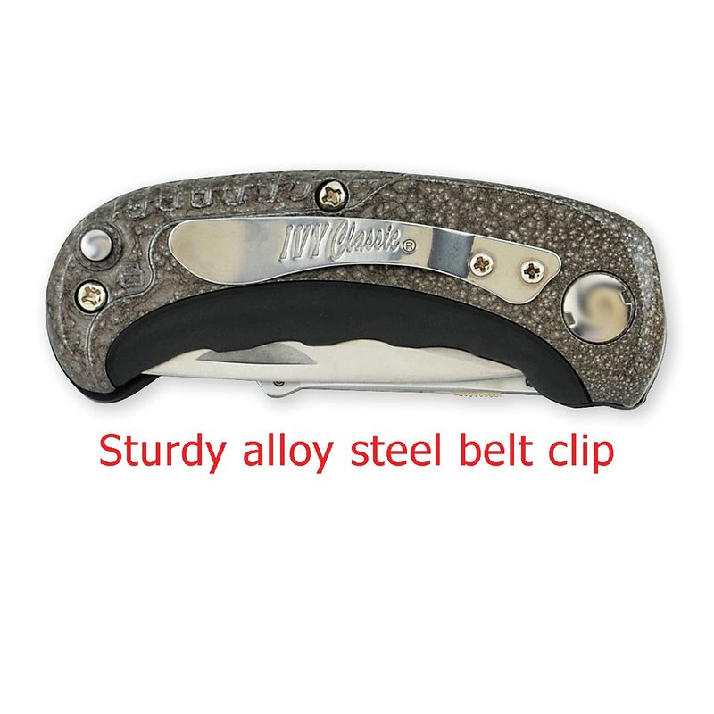 - HEAVY DUTY CONSTRUCTION: all-metal, heavy-duty construction with sturdy alloy steel belt Clip. Gray handle with stippled camouflage finish and rubber grip for comfort