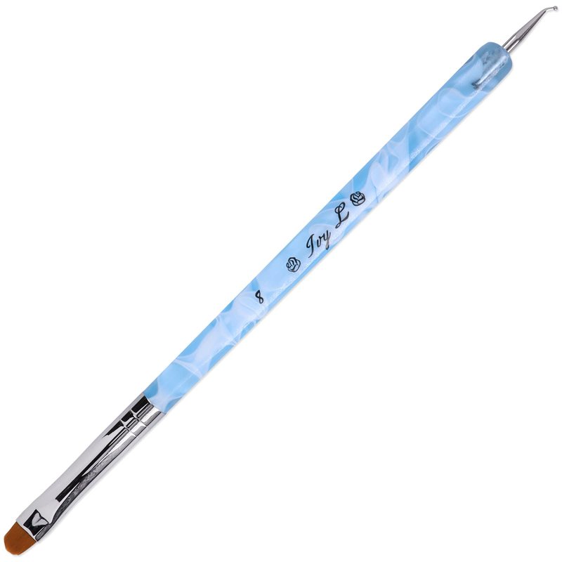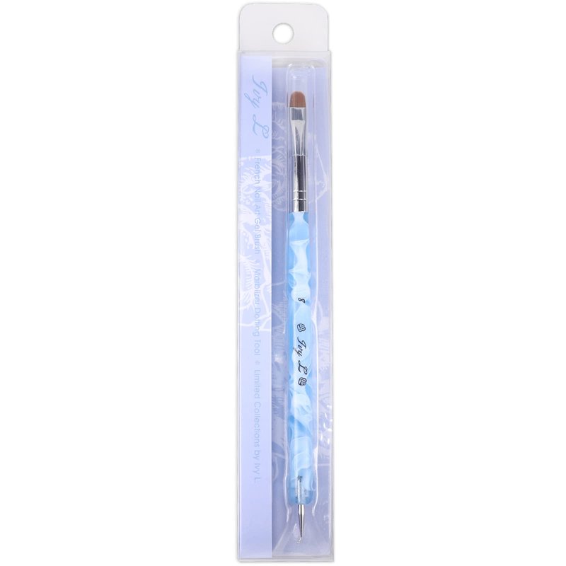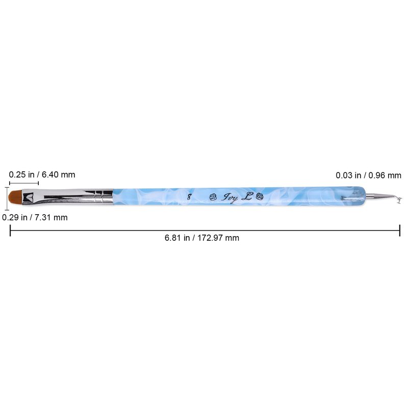 Ivy L 2- Way French Gel Acrylic Nail Art Kolinsky Brush with Dotting Tool for Professional Manicure Cuticle Clean up Nail Art Design (Size # 8, Blue Marble)