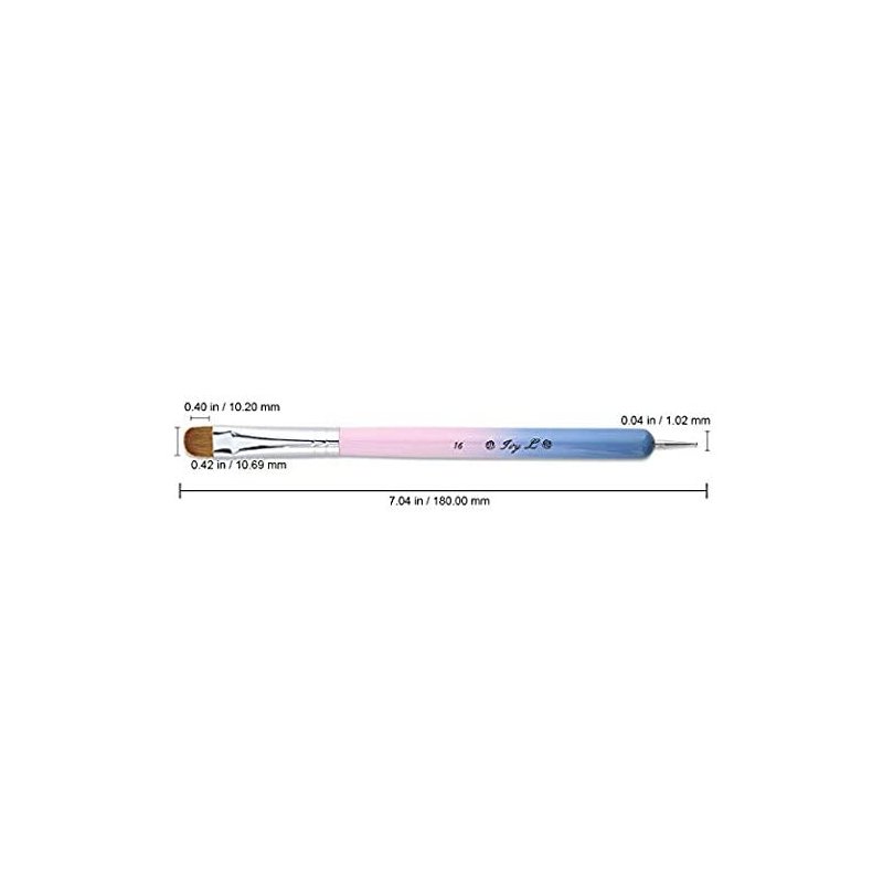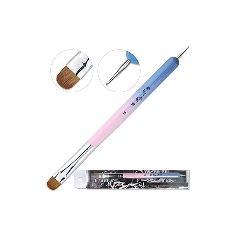 Ivy-L Premium 2 Way French Gel Acrylic Nail Art Kolinsky Brush With Dotting Tool for Professional Manicure Cuticle Clean Up Nail Art Design, Pink Blue Wood Handle (Size 16)