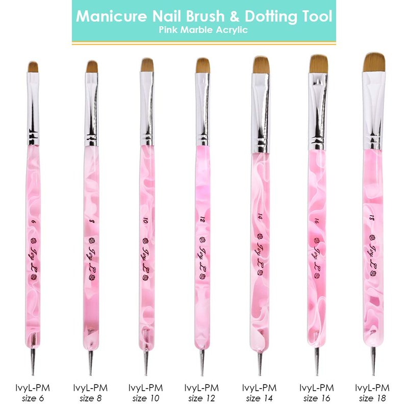 Ivy L Premium 2 Way French Gel Acrylic Nail Art Kolinsky Brush with Dotting Tool for Professional Manicure Cuticle Clean up Nail Art Design (Size # 8, Pink Marble)