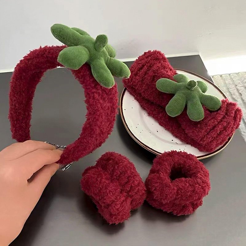 - 【Cute DESIGN CONCEPT】Headband for washing face features a fluffy and elegant design with unique and cute Strawberry shape,adding a touch of softness and versatility to your look. The skincare headbands can also be used as a cute hair accessory to modify the face shape, making it appear smaller and more lovely