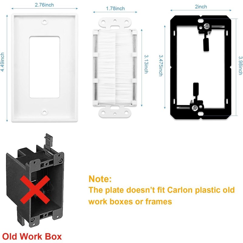- Easy to install: Single gang low voltage mounting bracket adjusts to fit 1/4-inch to 1-inch thick wall board, paneling, or drywall. Wall plates mount flush against wall. Insert the brush into the outer casing and place on the wall. Run cables through wall work well, single gang wall plate easily creates cable access from any wall.