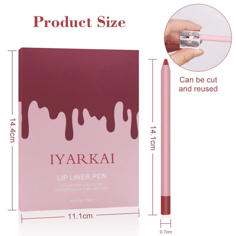 IYARKAI® Matte Lip Liner Pencil Set, 12 Colors Smooth Lip Liner Set, Matte Velvet Lipstick Pen, Smudge-proof and Waterproof, Long Lasting Fade Resistant, for Daily Travel Party Work