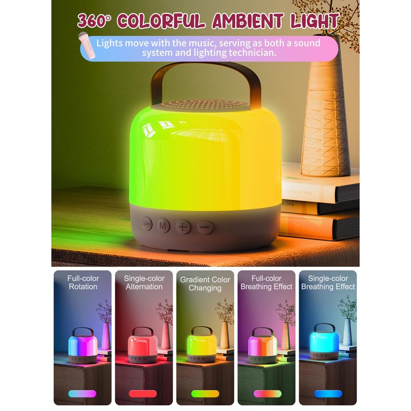 - ✅Dazzling 360° LED Ambient Lighting:The portable karaoke machine boasts five stunning RGB lighting effects that sync with the music, creating an immersive concert atmosphere. The colorful LED lights not only enhance the KTV experience but also double as a night light, adding a touch of fun and ambiance to any room.