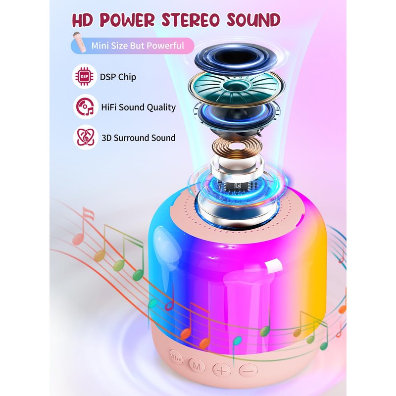 - ✅ Impeccable Sound Quality with Professional Tuning:Our mini karaoke machine features a high-sensitivity microphone, single speaker, and dual diaphragms technology. Professionally tuned for clear, distortion-free sound, it ensures exceptional audio quality and provides kids and family with an immersive surround sound experience.