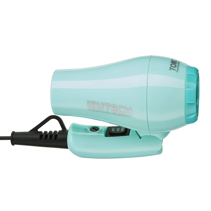 Izutech Toro2400 Mini Dual Voltage Foldable Dryer is a perfect companion for travelers. This impressively charming blower with High-Heat 2-Fan settings products 1200W powerful velocity dries hair silky in no time. Don't let the size fool you, the performance of this little power house with blow you away.