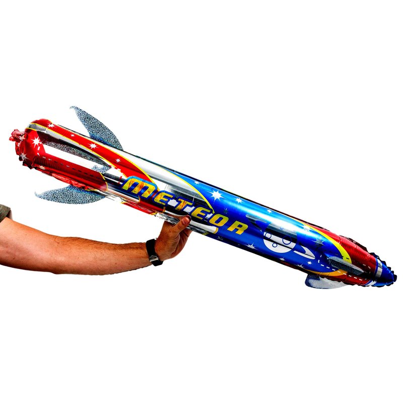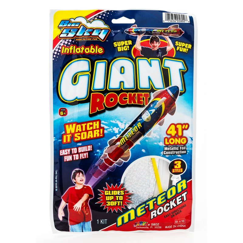 - 6 INDIVIDUAL PACK OF BIG SKY GIANT INFLATABLE ROCKET SHIP - Comes in random assorted metallic color and styles. Each giant inflatable rocket is 41 inch long. Just blow some air into the rocket to inflate it. Let it glide, float and soar into the sky. Great for toys, decor, and props for kids and adult. Plus 1 Collectable JA-RU bouncy ball.