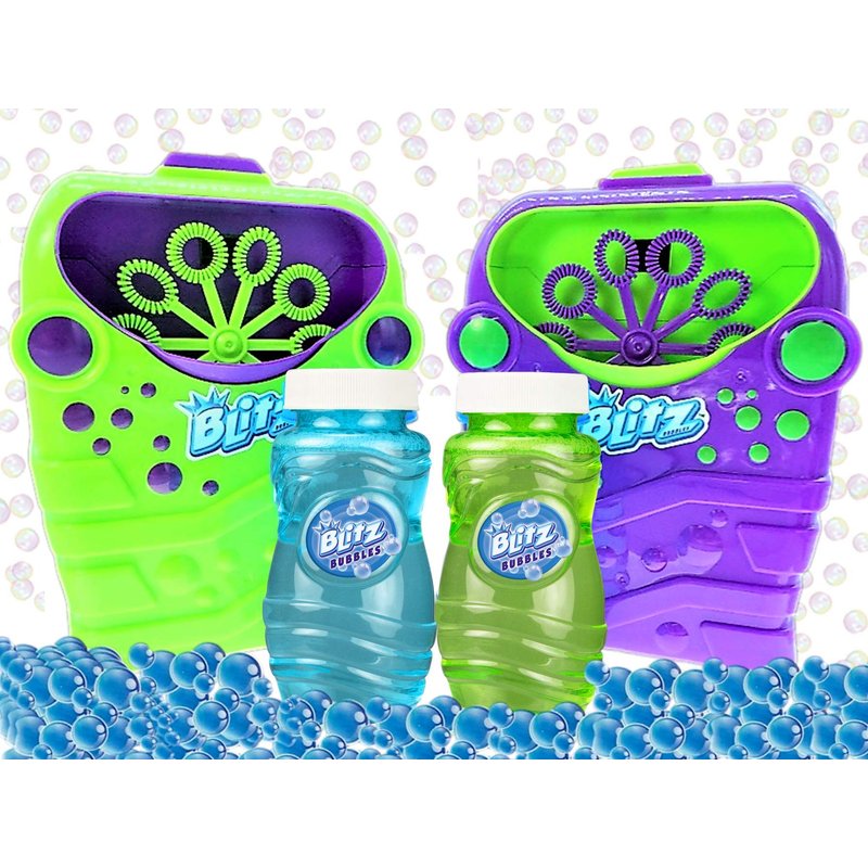 - 1 PACK OF BLITZ STREAM KIDS BUBBLE BLOWER MACHINE - Includes 1 large 5oz bottle of premium scented bubble soap solution which is the world's best bubble that will float higher and last longer. Comes in any of the two assorted colors (Green or purple). Automatic and battery powered bubble maker. Super lightweight and can easily makes thousands of bubbles in a minute. Plus 1 FunaTon Sticker