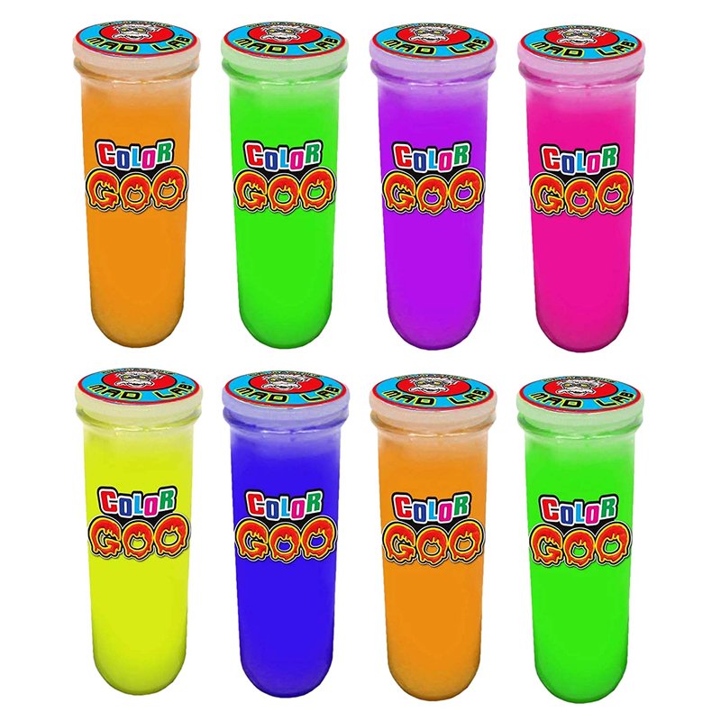 - 8 PACKS OF DR. WACKO'S MAD LAB SLIME KIT - Slime is sealed on a tube. Comes in assorted vibrant rainbow colors (Purple, Blue, Yellow, Orange, Pink, and Green). Everything slime all the time. Great boy toy and girls toys. Best selling toys.