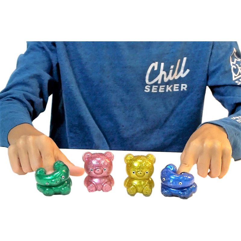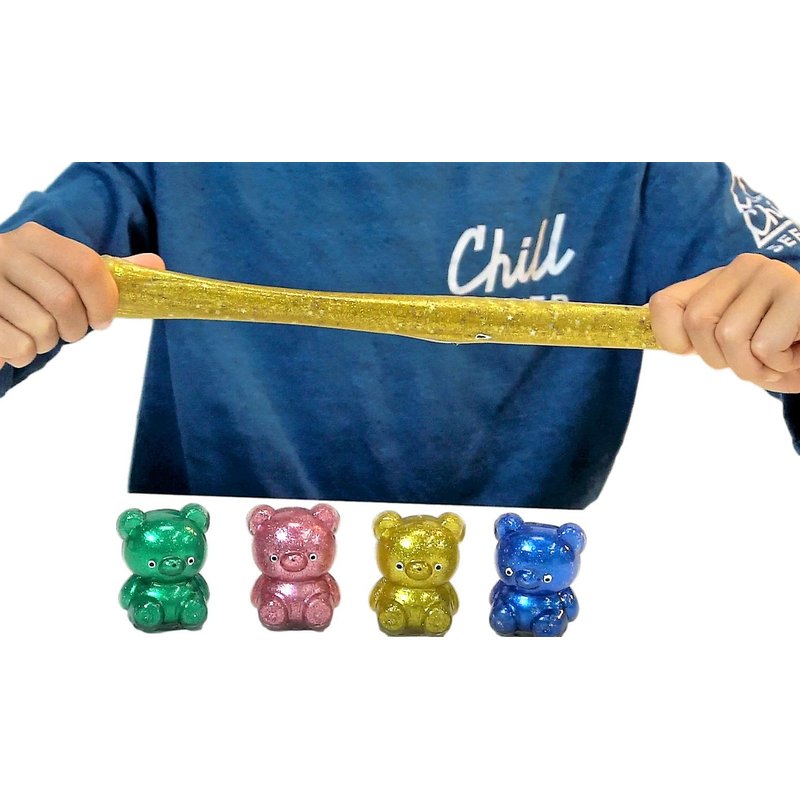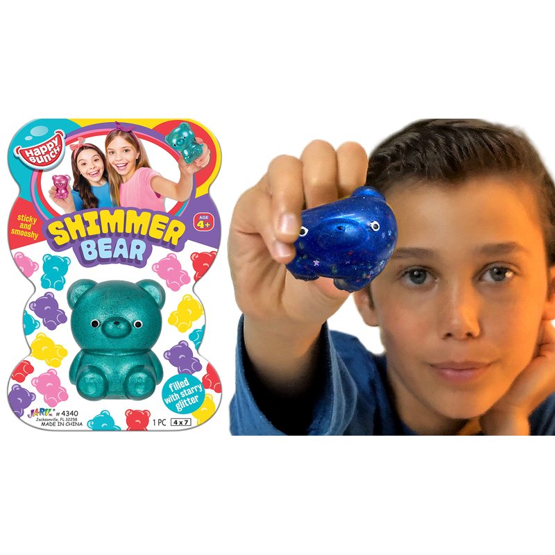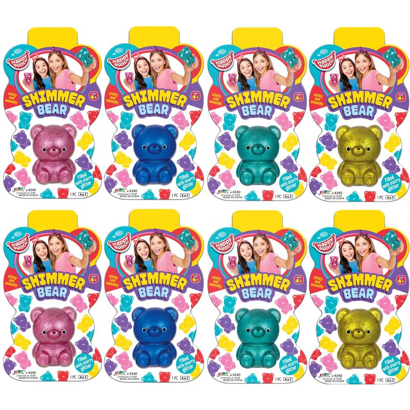 - 8 Individual Pack of Shimmer Bear Squishies For Kids - Cute bear animal squishies. These squishy fidget toys for kids are filled with sparkling glitter slime. Assorted colors (Pink, Blue, Yellow, Green) Plus 1 FunaTon Sticker.