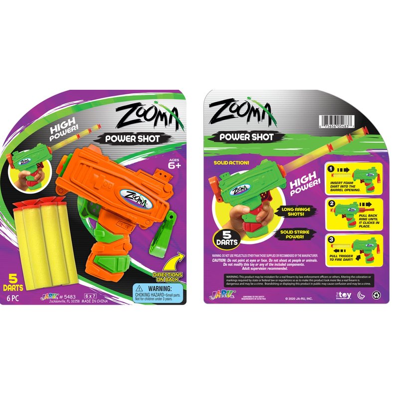ZOOKA in the New Ultra Foam a very HIGH VELOCITY Most Super mega Powerful Dart toy gun Party favor supplies, will help your child develop hand to eye coordination skills in a fun and exciting way because it comes with a power shot gun and 5 darts that can stick to many surfaces. Imagine how much fun your child will have shooting the darts with friends and competing with each other. Each pack includes 5 darts and a power shot gun for a great value. Designed for kids, bright color and cool modelling, kids will love it. Play with your family or friends and challenge them. Indoors or outdoors it will give you an unprecedented joy. Do not aim and shoot directly to the eyes. Fires over 20 feet - High Velocity with No Battery Needed. Soft Safe Darts - Made of High Quality Foam. To Prevent Eye Injuries, Do Not Aim at Faces. Big Enough for Both Kids and Even Adults. Awesome Choice for Party of All Ages. Do not aim at other people's face or eyes.