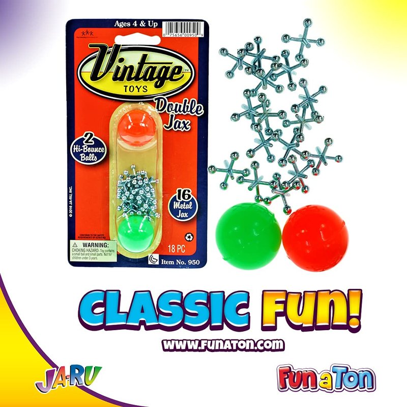 - 6 SET OF MINI METAL JACKS - Vintage metal jax game set contains 16 jacks comes with two balls of different colors and instructions on how to play. Classic and fun to play on table top. Game for kid and adult alike. Plus 1 additional collectable JA-RU exclusive Bouncy Ball.