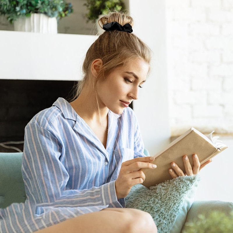 - Black Scrunchies: 12 satin hair scrunchies in black, perfect for black series lovers - Add a touch of elegance to your hairstyles.