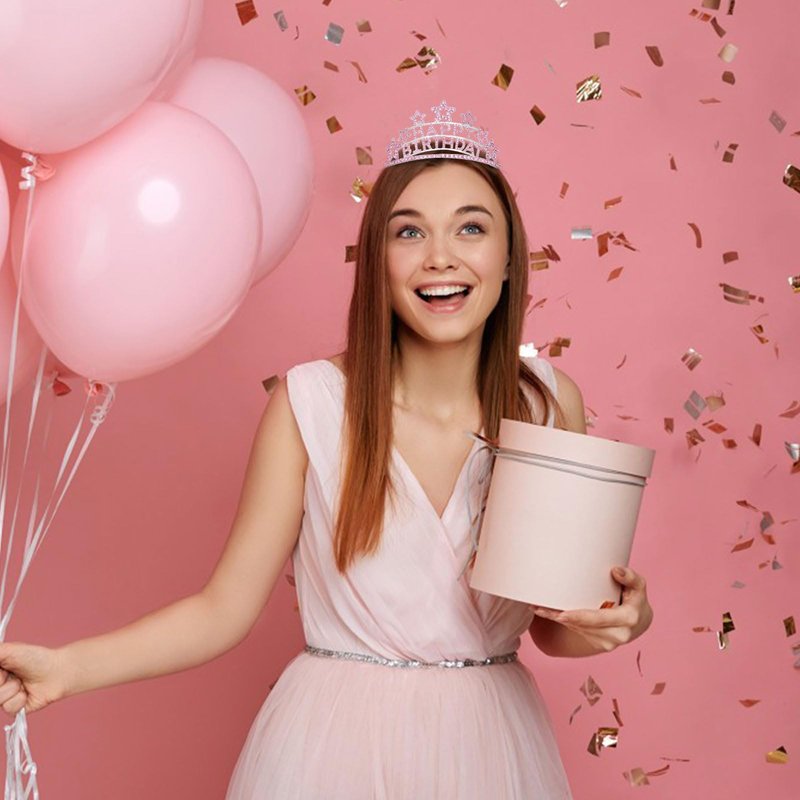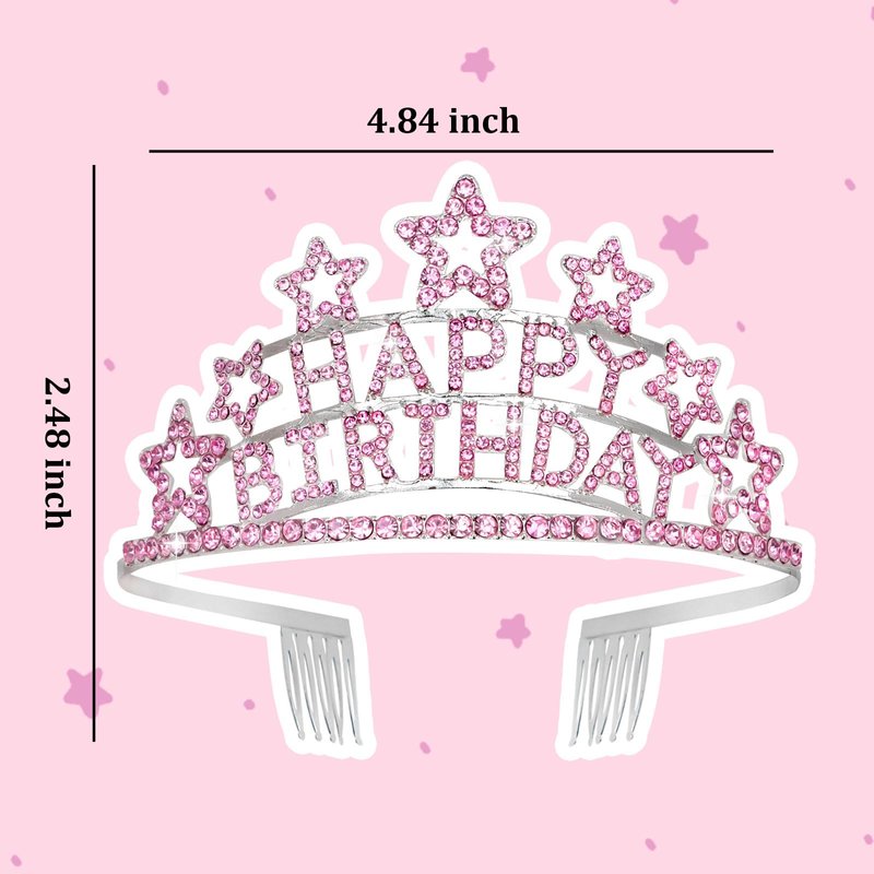 - Birthday Gifts for Women: Silver tiara is made of high-quality materials, including silver metal and sparkling pink rhinestones, the "HAPPY BIRTHDAY" font is decorated with a circle of five-pointed stars for extra emphasis, making the crown stand out more and gives it a luxurious and elegant look.