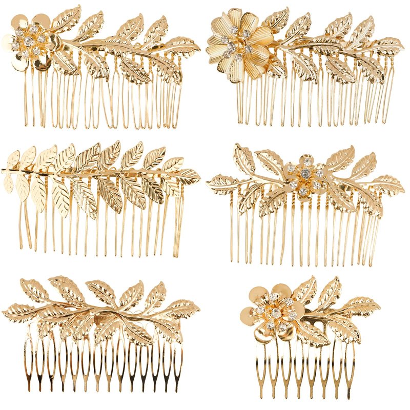 Jaciya Leaf Hair Comb Gold Hair Accessories Metal Hair Combs Rhinestone Flower Hair Side Combs Wedding Bridal Jewelry Hair Clips for Women GirlsQuantity: 2 * gold leaf hair combs, 4 * gold flower with rhinestones leaf hair combs