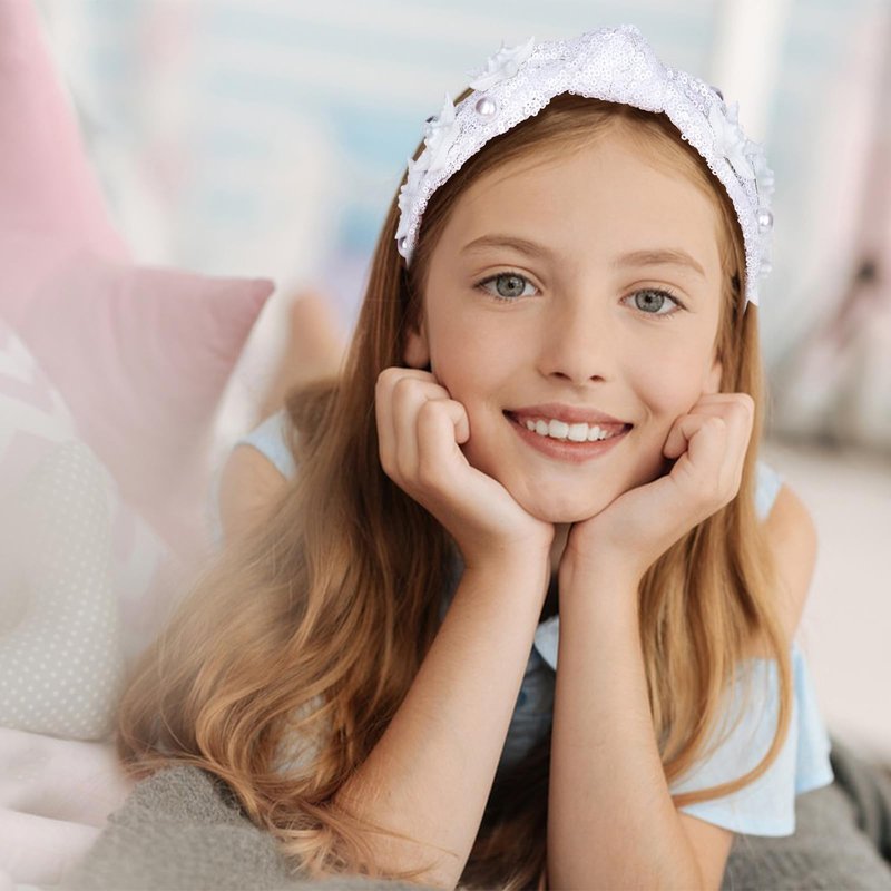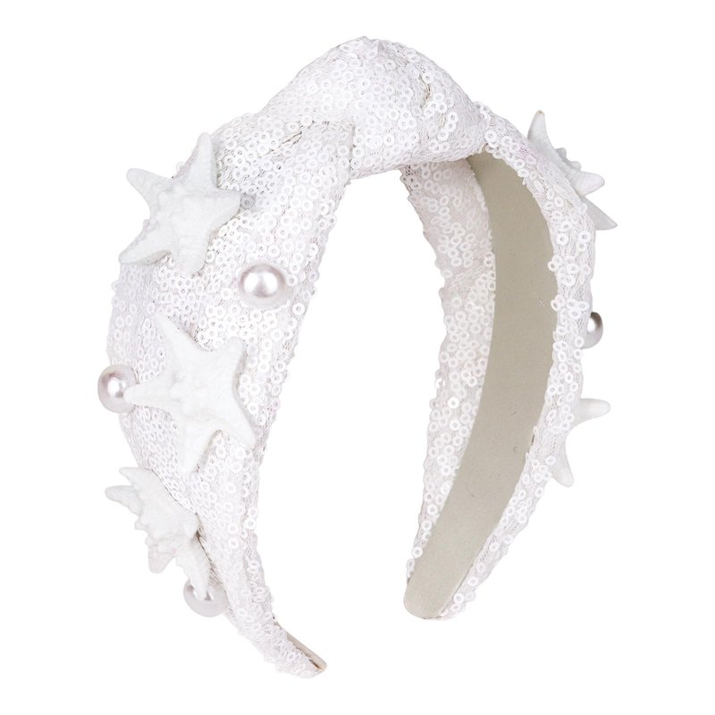 Jaciya Mermaid Birthday Party Decorations Sequin Pearl Headband for Women Sparkly White Headband for Girls Cute Knotted Starfish Head Band Fashion Hairband