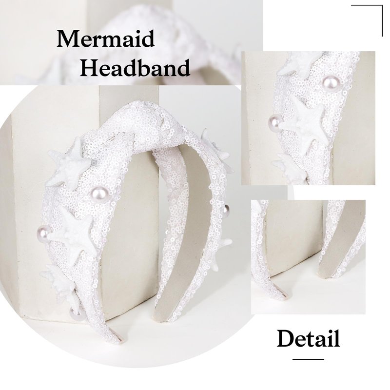 - Dazzling and Eye-Catching: Our mermaid knotted headband features a vivid white starfish with high quality pearls and sequin to add a touch of glamour to any outfit.