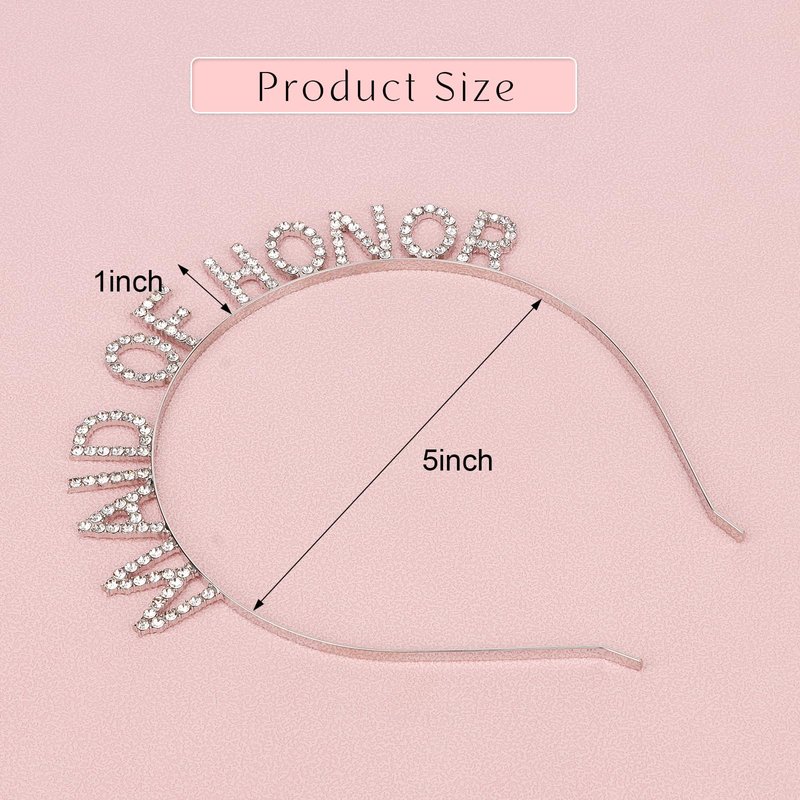 - Size of Maid of Honor Headband: One size fit all. Durable, lightweight metal headband can be easily stretched and tightened, perfect for most adults.