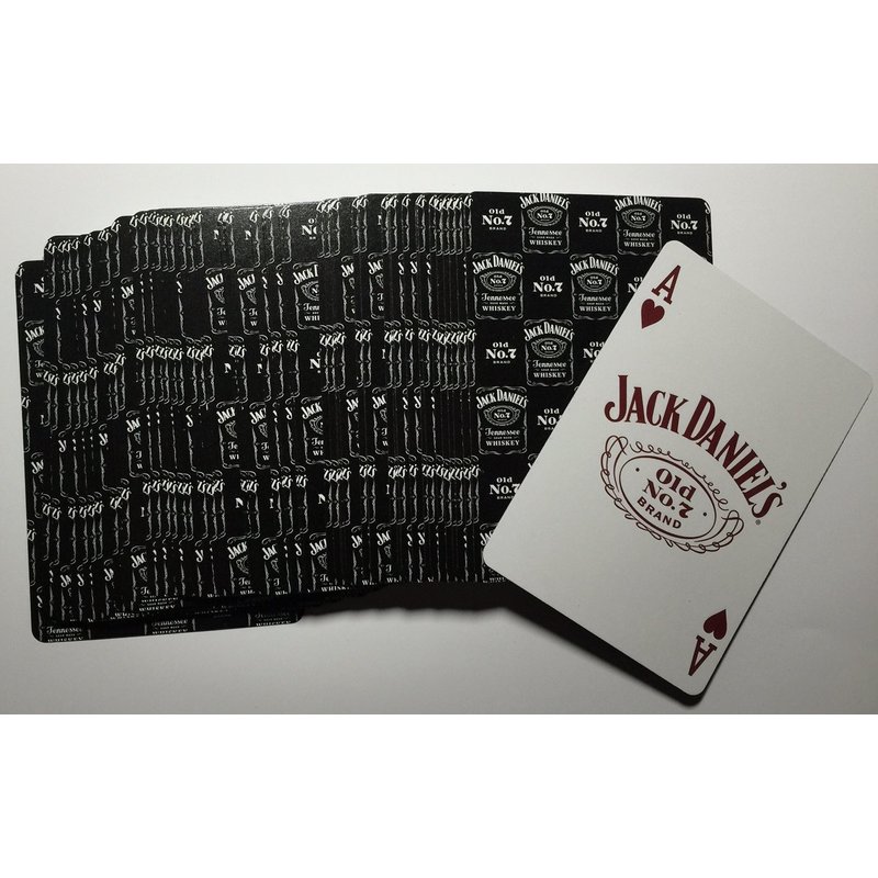 These Jack Daniel's Playing Cards are by Holye Products. Hoyle has been producing quality playing cards for generations. You are going to instantly recognize the superior quality that Hoyle puts into each deck they manufacture. The back of each poker sized card features the artwork seen on the packaging.