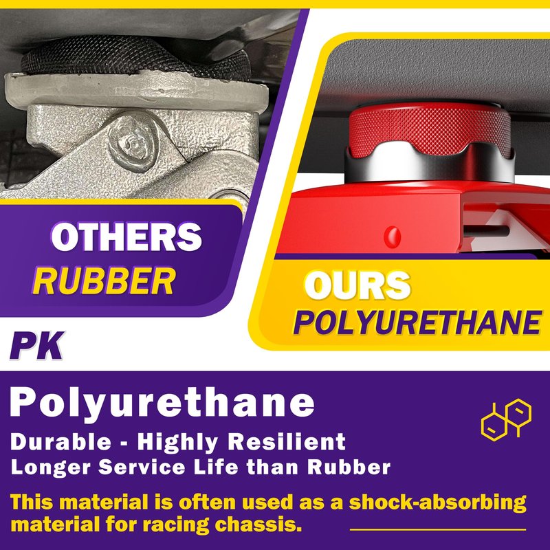 The Upgraded Jack Pad is made of high-quality Polyurethane, which is often the raw material of shock-absorbing for racing chassis - Durable - Resilient - Longer Service Life than Rubber.