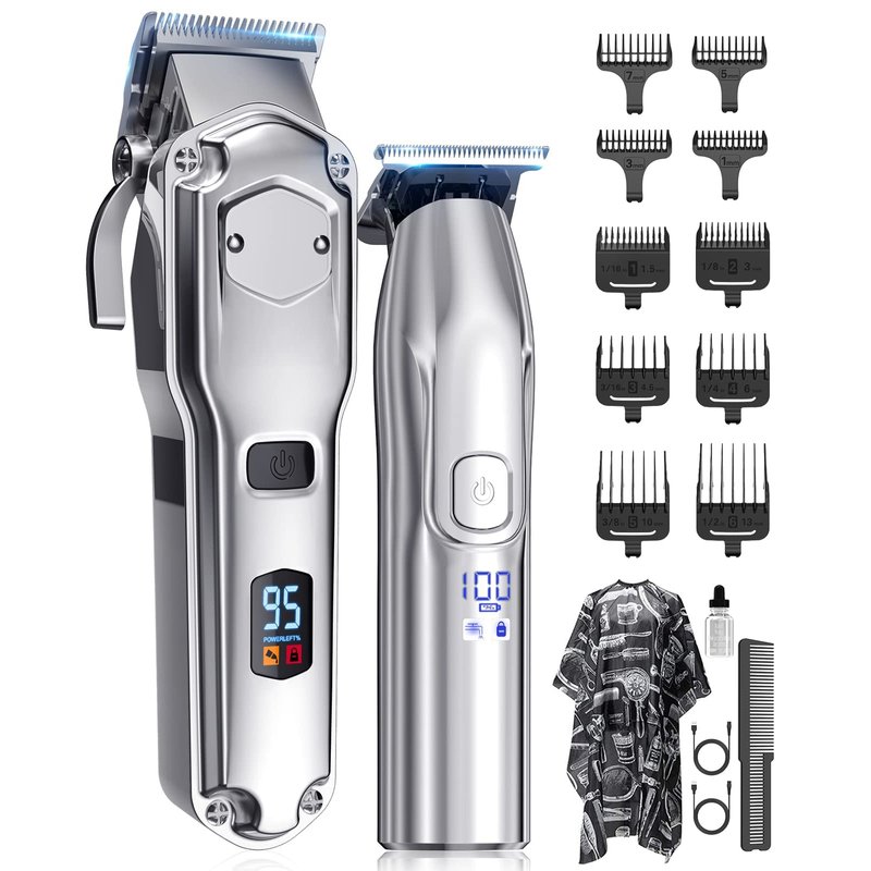 - Professional Hair Clipper and Trimmer Set-- The large hair clipper can be used to shave both hair and beard, while the small trimmer is equipped with a T-shaped blade for zero-gap trimming of sideburns and edges around the ears. You can easily get the haircut you want at home, just like in a hair barbershop