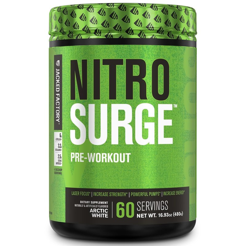 Jacked Factory NITROSURGE Pre Workout Supplement - Endless Energy, Instant Strength Gains, Clear Focus, Intense Pumps - Nitric Oxide Booster & Preworkout Energy Powder - 60 Servings, Arctic White