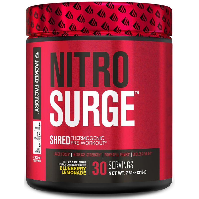 Jacked Factory NITROSURGE Shred Pre Workout Supplement - Energy Booster, Instant Strength Gains, Sharp Focus, Powerful Pumps - Nitric Oxide Booster & PreWorkout Powder - 30Sv, Blueberry Lemonade