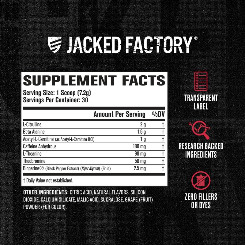 - Manufactured in a cGMP-Certified Facility: All Jacked Factory products are manufactured under stringent quality control standards to ensure proper purity and potency. This formula is completely free of harsh chemicals, fillers, and artificial food dyes.