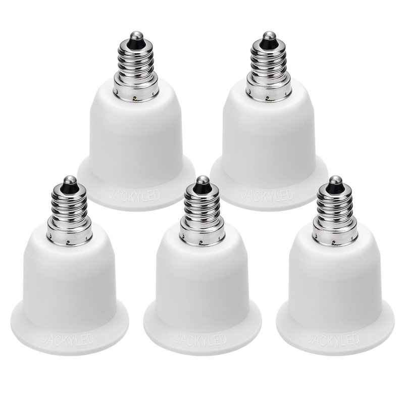 - 【Wide Application】 - This JACKYLED E12 to E26 adapter transforms your E12 candelabra base light fixture to fit any standard E26/E27 medium base bulb that meets energy efficiency standards. Perfect for garage, bedroom, living room, kitchen, hallway, conference room, office, workshops, and exhibitions, etc.