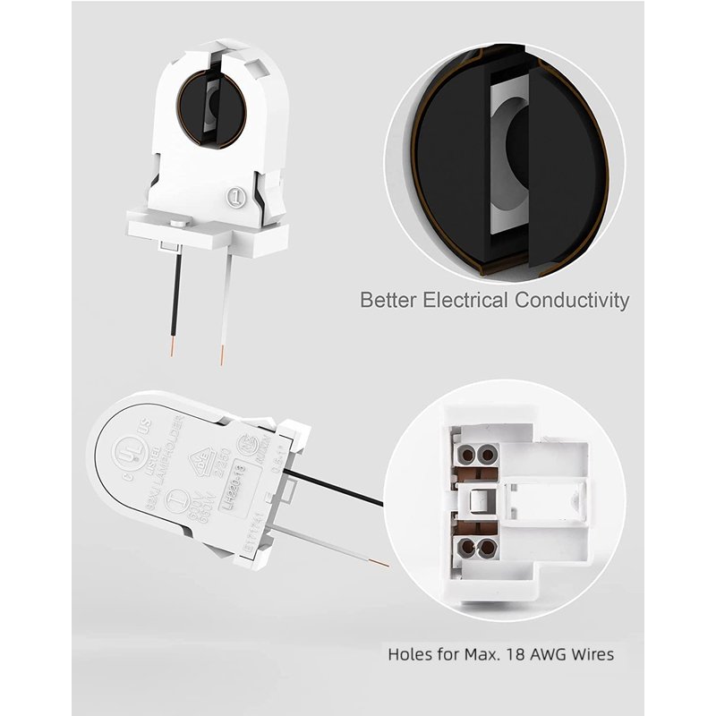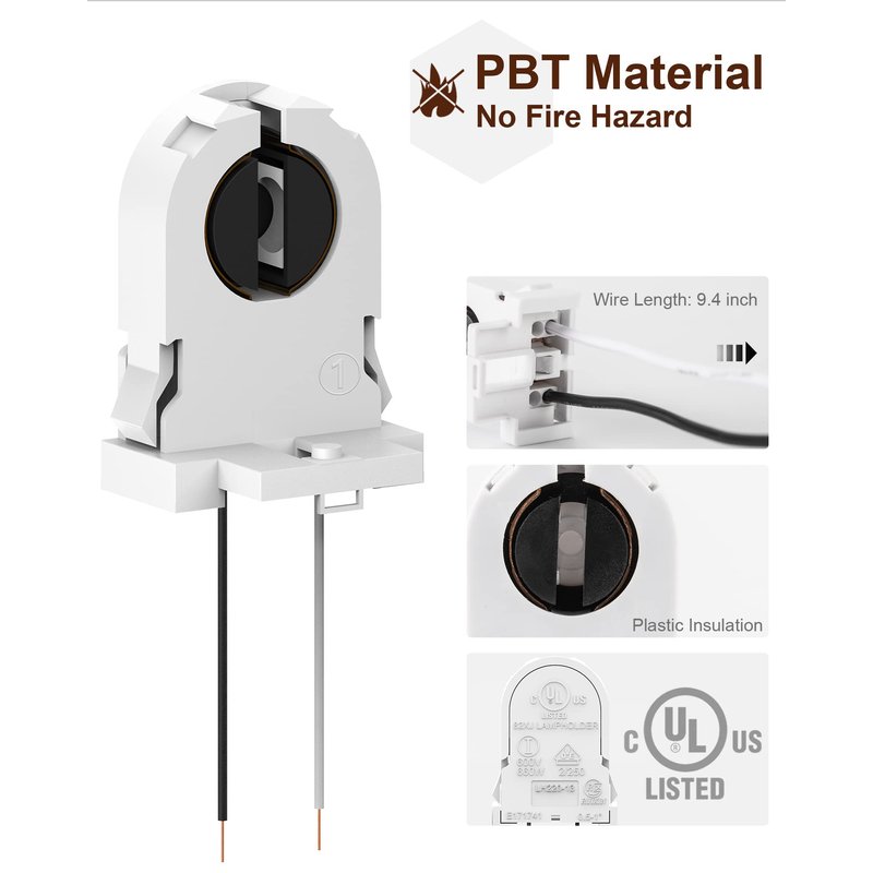 - UL Listed: Made from high quality fireproof PC, the T8 lamp holders are heat resistant and 111% safe from fire hazard, durable even after years of use.