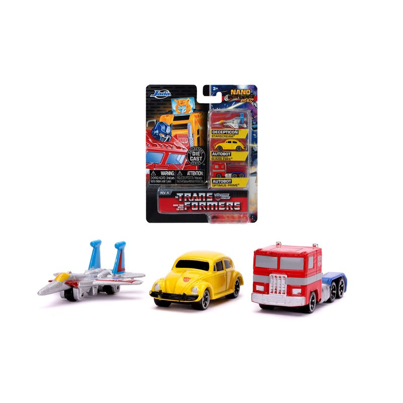 Jada Toys 253111005 Transformers Set of 3 Nano Die-cast Optimus Prime, Starscream, G1 Bumblebee VW Beetle Toy Cars Set 4 cm from 8 Years