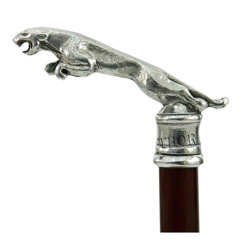 Jaguar Head Handle Victorian Look Wooden Walking Stick Vintage Cane