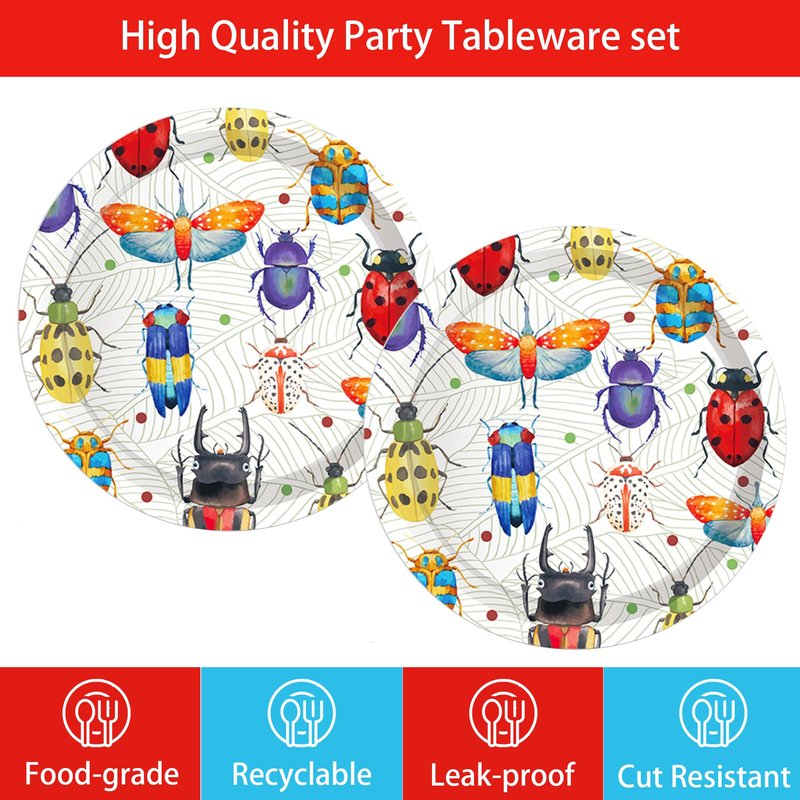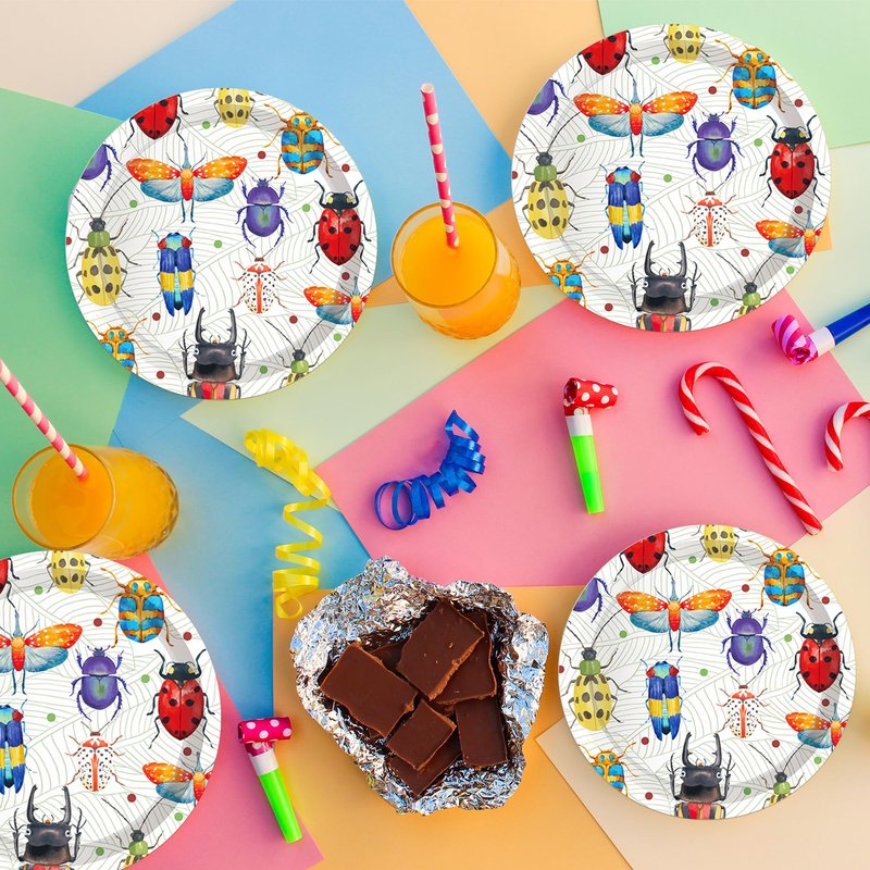 - Bring a burst of color and a dash of whimsy to your next celebration with our 7-inch Bug-Themed Paper Plates, featuring a delightful array of insects that will captivate the imagination of children and adults alike.