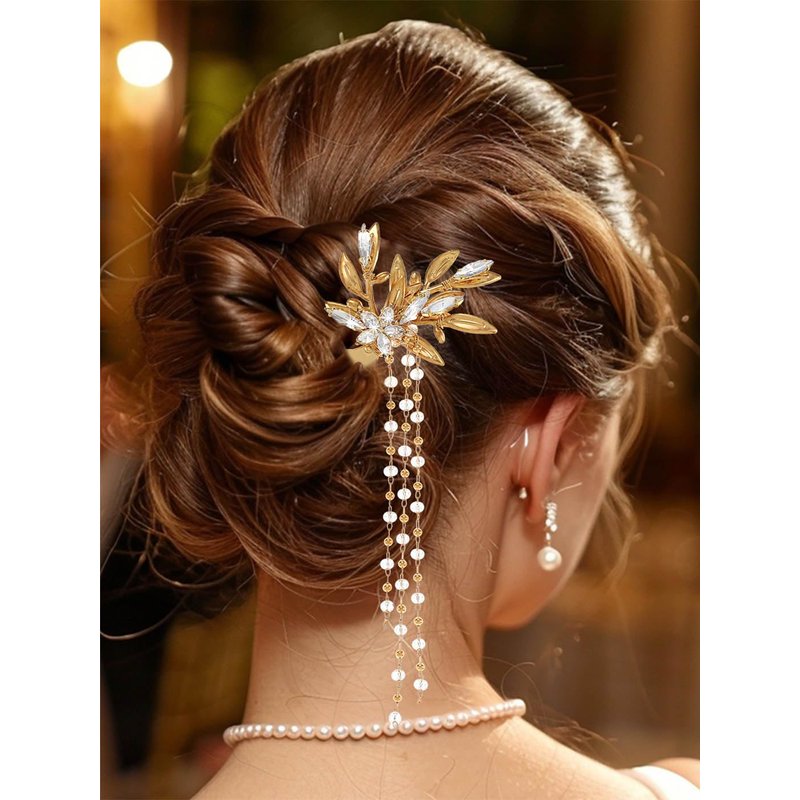 Crystal hair side comb is made of tassel crystal and alloy.Leaf comb will bring glamour and elegant to your outfit, which is easy to fasten and take off. Crystal hair piece fits for wedding, engagement, prom, party, festival and other occasion, make you more elegant. Wedding hair clips offers you multiple styles for a unique experience.