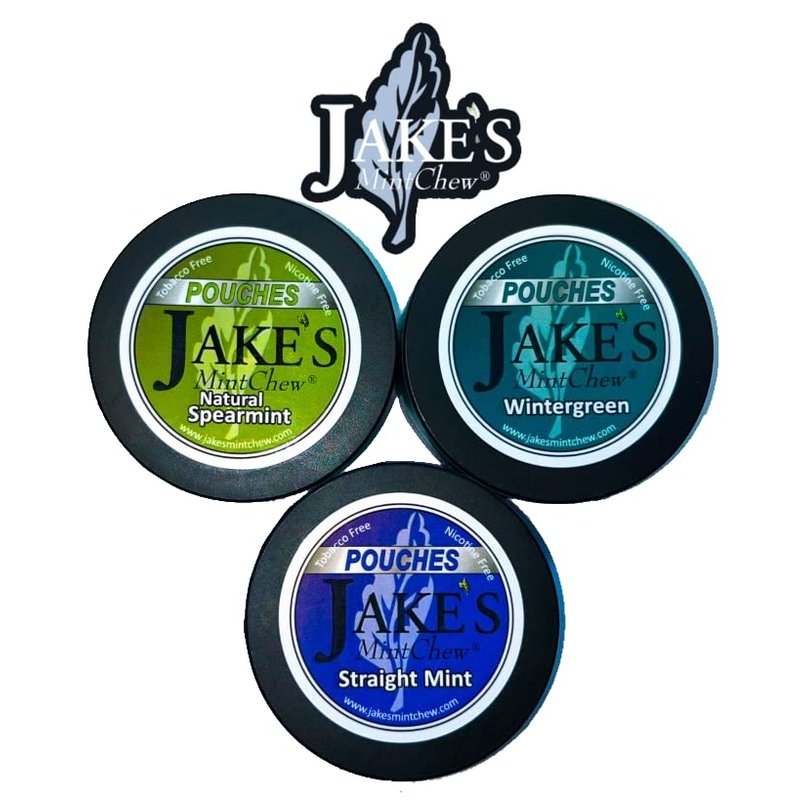 Jake's Mint Chew is a non-tobacco chew made from organic mint leaves, organic flavors, and vegetable glycerin(a sweetener and preservative.) It's nicotine-free, good for your digestion, a natural appetite suppressant, and good for your breath! Plus, vegetable glycerin is not metabolized by the body like sugar, so Jake's Mint Chew does not cause tooth decay! Jake's Mint Chew packs like chewing tobacco. It's not overly gummy like other brands, and has a shelf life of at least six months. Jake's Mint Chew: "Chew Healthy, Chew Mint!" Trusted by the MLB and PGA!