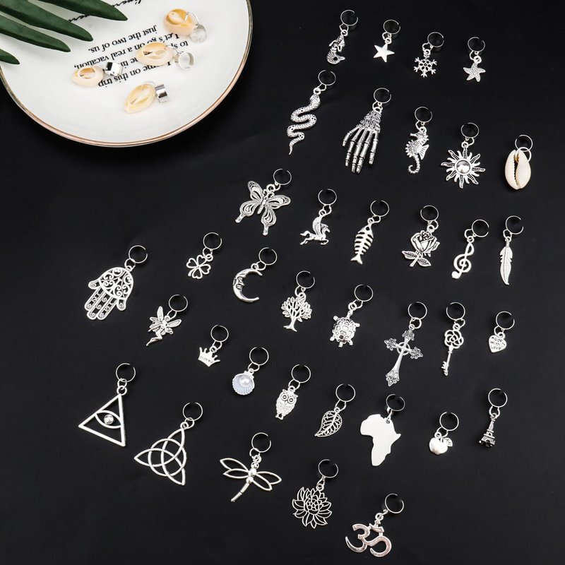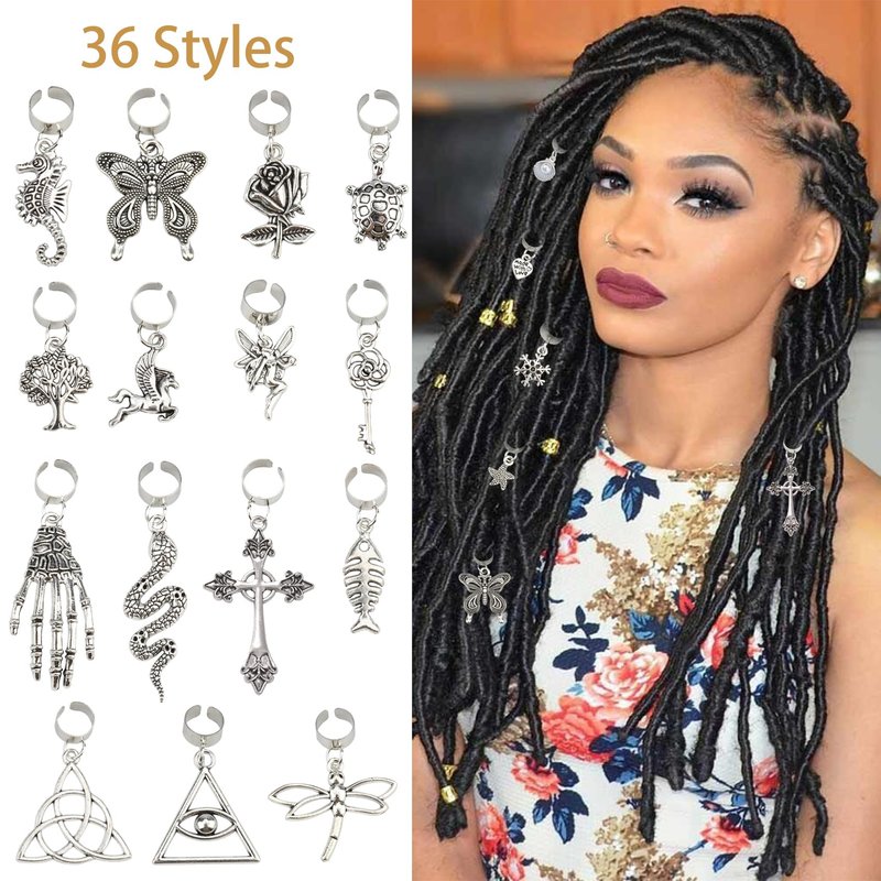 - African Style: The hair charms have 36 African styles, such as sun, moon, snowflake, star, butterfly, leaf, shell, tree, sword, rose, fairy, mermaid, map, heart, crowns and more, can show your retro personal tastes, make your hair styles more unique and charming.
