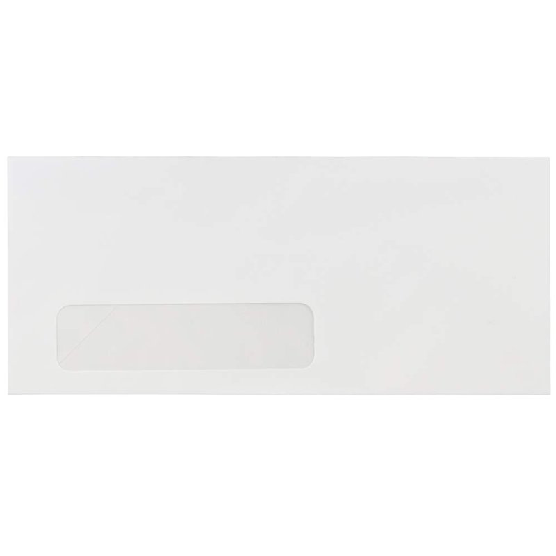 JAM Paper #10 Commercial Window Envelopes are ideal for both business and personal mailings. Never individually address invoices, statements, and letters when you use these classic white envelopes, as the window on each envelope does the job for you. Standard, simple, and professional, our envelopes provide versatility and style. This pack contains 50 commercial window envelopes. Each envelope measures 4 1/8" x 9 1/2", has a booklet opening, commercial flap, gum closure, is made from 24 lb. paper, and has a smooth finish. Size: 4.125in x 9.5in | Color: White | Quantity: 50/pack