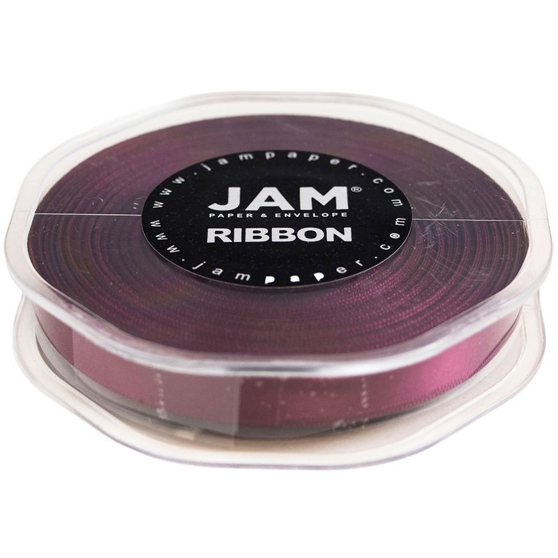 Versatile and stylish, JAM Paper Satin Ribbon is the perfect accessory for any gift, craft, and occasion. This stunning burgundy/wine satin ribbon perfectly accents fall decor, weddings, and more! Simply tie around bouquets, centerpieces, more to add detail and charm, certain to be noticed by others. However you decide to use, our double faced satin ribbon delivers a high quality appearance that is guaranteed to impress. Available in an assortment of fun colors, finding the perfect ribbon is simpler than ever. This burgundy/wine satin ribbon measures 3/8" x 25 yards, is sold in one roll of 25 yards, and has a smooth finish. Size: .375in x 25yd | Color: Burgundy/Wine | Quantity: 1 (Sold Individually)