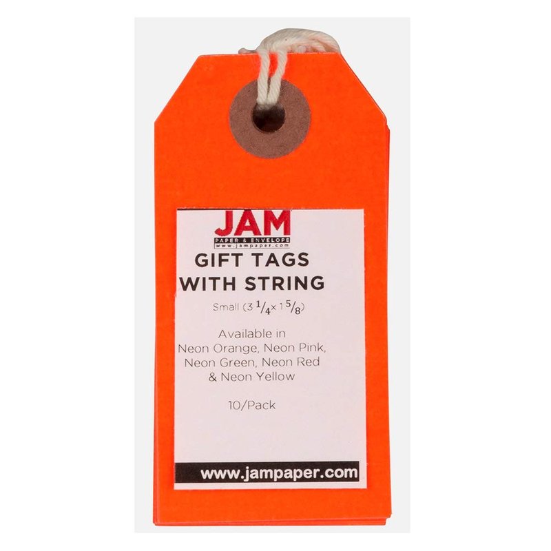 JAM Paper Neon Red Small Gift Tags with String are essential for labeling presents, items, goody bags and more! Their vibrant red hue excels at drawing attention, so no one will miss seeing what you've written on the tags. They measure 1 5/8" x 3 1/4", offering enough room for you to jot down brief notes of thanks or heartwarming messages. You can also use them for pricing products you're selling at a rummage sale. Each tag is produced from smooth, high quality 80lb cardstock and features a secure string that you can use to tie the tag around your item. You'll soon find out that this pack of 10 tags will come in handy anytime and anywhere! Size: 1.625in x 3.25in| Color: Neon Red| Quantity: 10