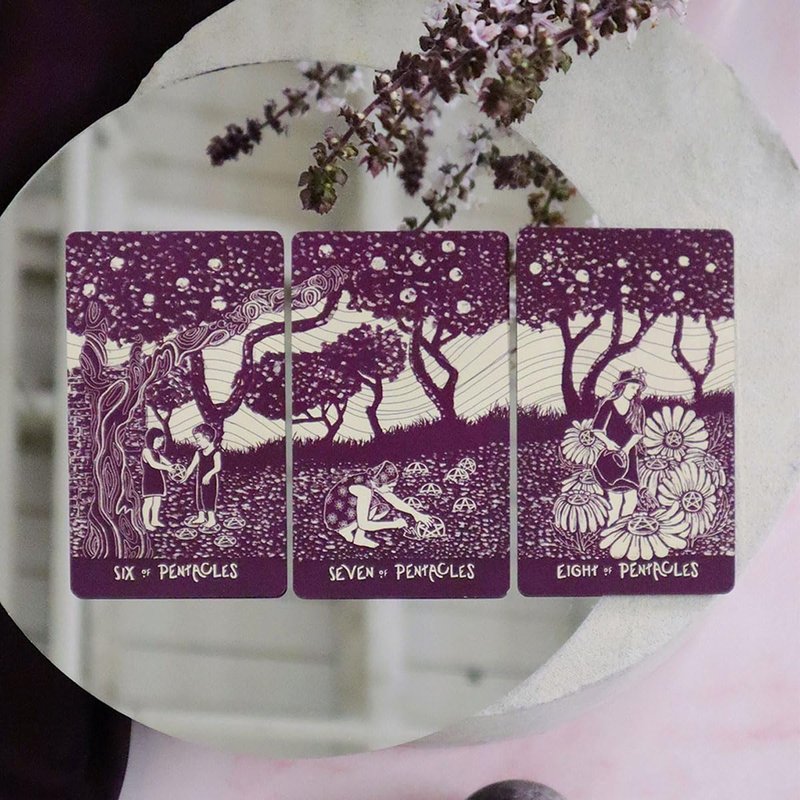 - This Tarot deck includes minor arcana cards that come together to form one continuous image. This panoramic feature aids in the memorization of each card's significance by associating the individual meaning of the card with the broader meaning of the suit.