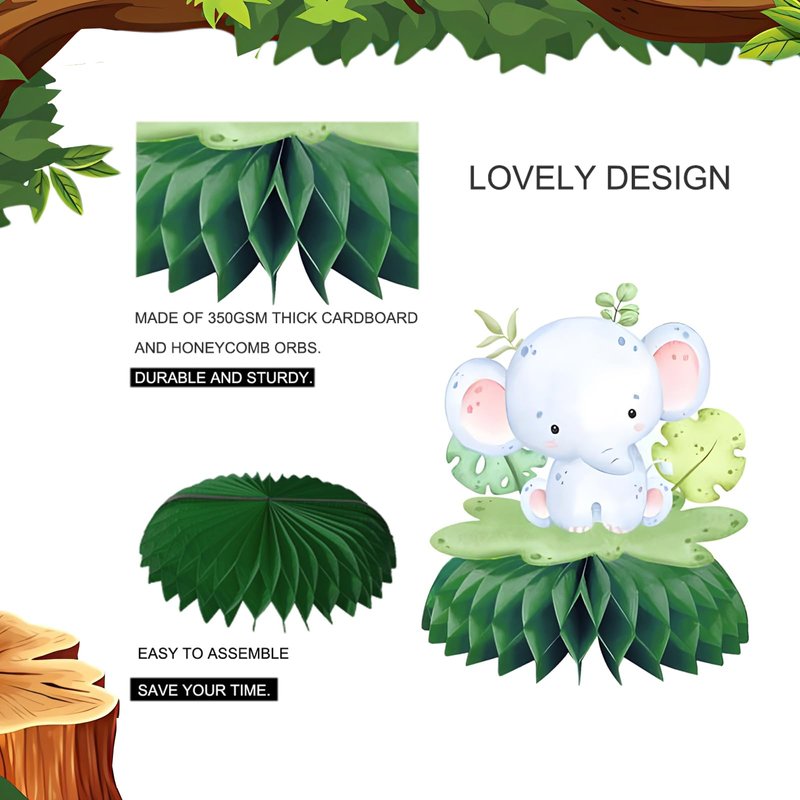 - Safari baby shower decorations designed in honeycomb shape which looks funny and adorable are nice for festivals, creative table decorations, as photo decoration props, children's party, baby shower, animal party and birthday party