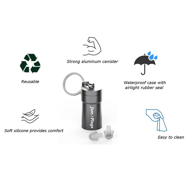 - WATERPROOF ALUMINUM CANISTER: Keep your ear plugs safe and secure in the solid aluminum canister, rubber sealed to protect them from water damage.